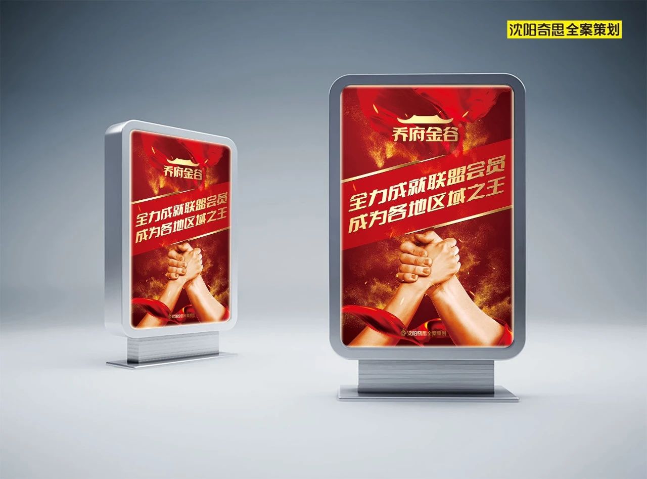 喬府金谷誕生之初,集團(tuán)領(lǐng)導(dǎo)就邀請(qǐng)沈陽(yáng)奇思為品牌進(jìn)行策劃設(shè)計(jì)。巧妙定位,助力喬府金谷一戰(zhàn)成名。